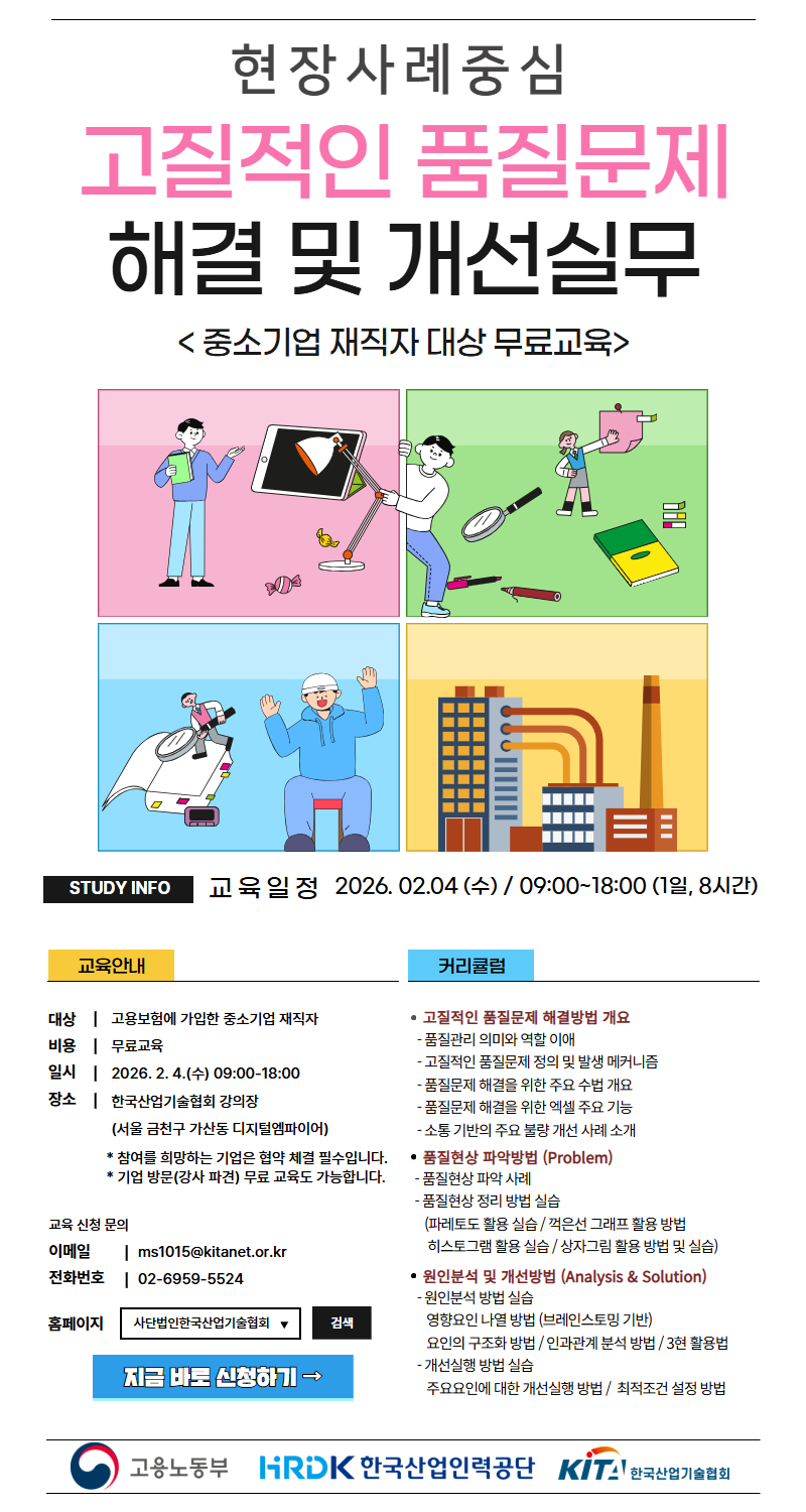 [무료교육] (현장사례중심) 고질적인 품질문제 해결 및 개선 실무 2/4 마감임박