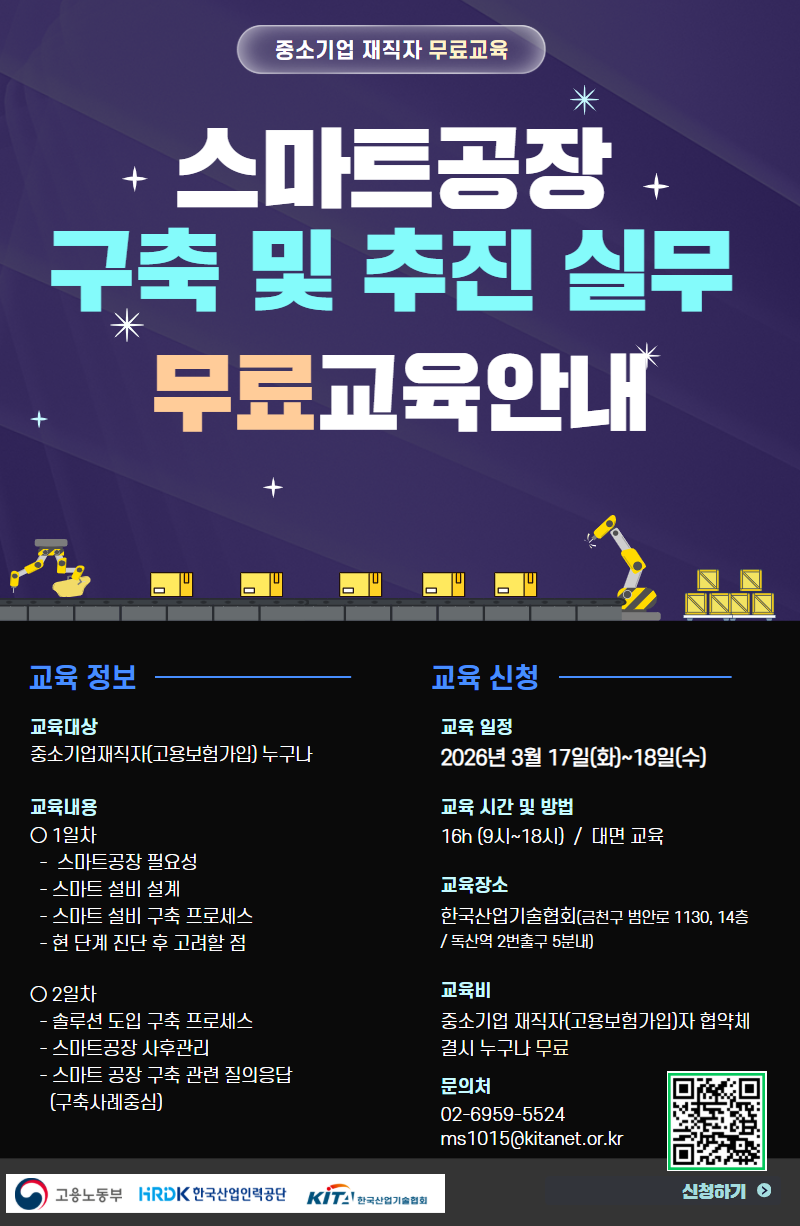 [무료교육] 스마트공장 구축 및 추진 실무 3/17~18